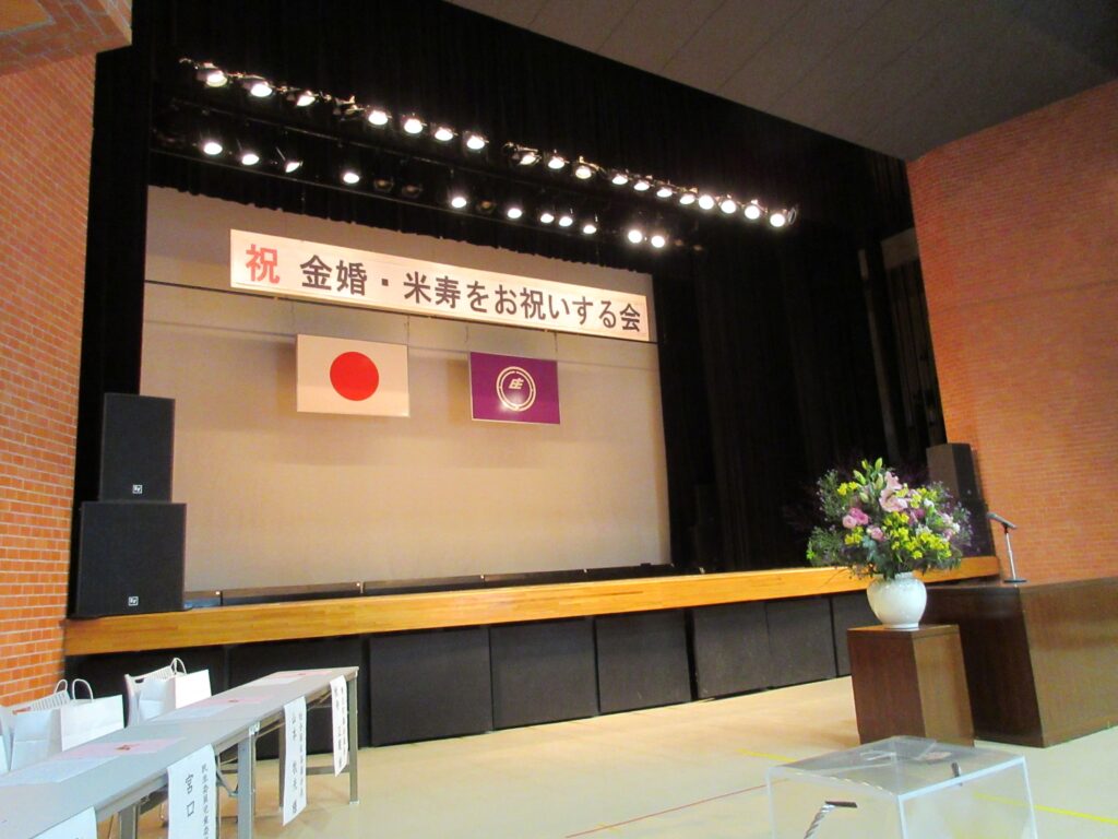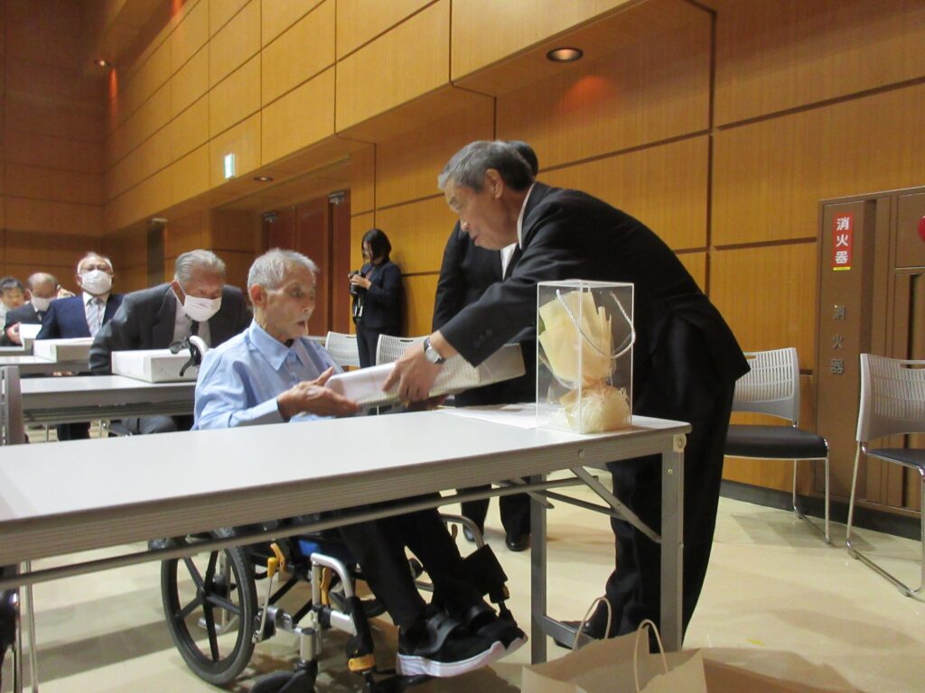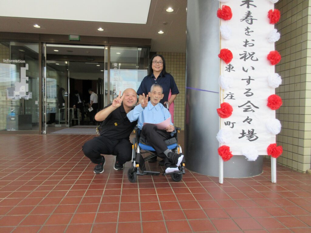 9月25日は、東庄町主催「金婚・米寿をお祝いする会」が開催されました。当園から初めて、T・Yさんが米寿お祝いのご招待を頂きました。A課長と共に東庄公民館に伺い、岩田町長からお祝いを頂きました。戦前生まれで激動の昭和を生き抜き、沢山の苦労をされながらご家族の愛情を受けて長生きされたTさんは、本当に働き者です。今でも時間があれば、館内の廊下やお部屋を掃除してくれます。これからもどうかお元気でお過ごしください。私達もできる限りの支援をさせて頂きます。