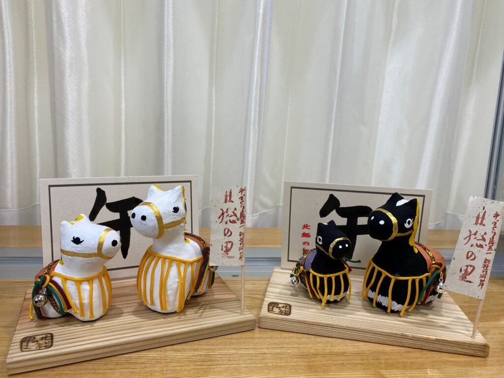 さて、北総冬の風物詩、紙工芸班の「新春干支人形セット」が出来上がりました!!来年の干支は、「丙午(ひのえうま)」、紙工芸班スタッフが考案したのは、いかにも強そうな「黒馬」のデザインです。おめでたい「白馬」も作成しております。ぜひご注文をお待ちしております!