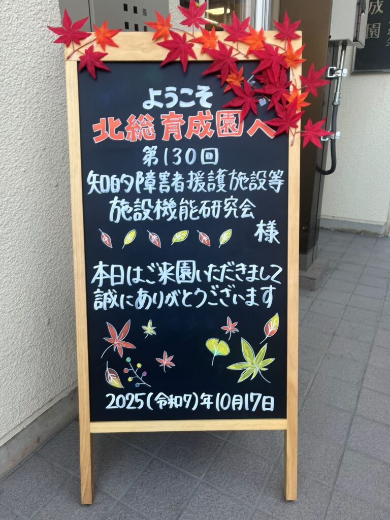 10月17日(金)、「第130回知的障害者援護施設等施設機能研究会」が当園を会場に行われました。県の障害福祉事業課丸山課長、社会福祉法人佑敬会理事長里見会長はじめ、皆様にお集まりいただき、北総の運営紹介・施設案内をさせて頂きました。沢山の施設長さん達にご来園頂き、色々と情報交換をさせて頂きました。利用者の皆さんが年をとってもそれぞれの役割と出番のある暮らしや作業に、沢山のお褒めの言葉を頂きました。また施設周りの環境整備・館内の整理整頓なども見て頂き、我々職員にとって大変良い勉強になりました。これからも皆様のご指導を賜りたくお願い申し上げます。